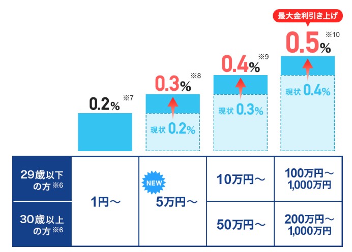 2025.7.1新設 各種取引(マネーブリッジ含む)で金利アップ (xxx万円超は最大0.xxx%) |